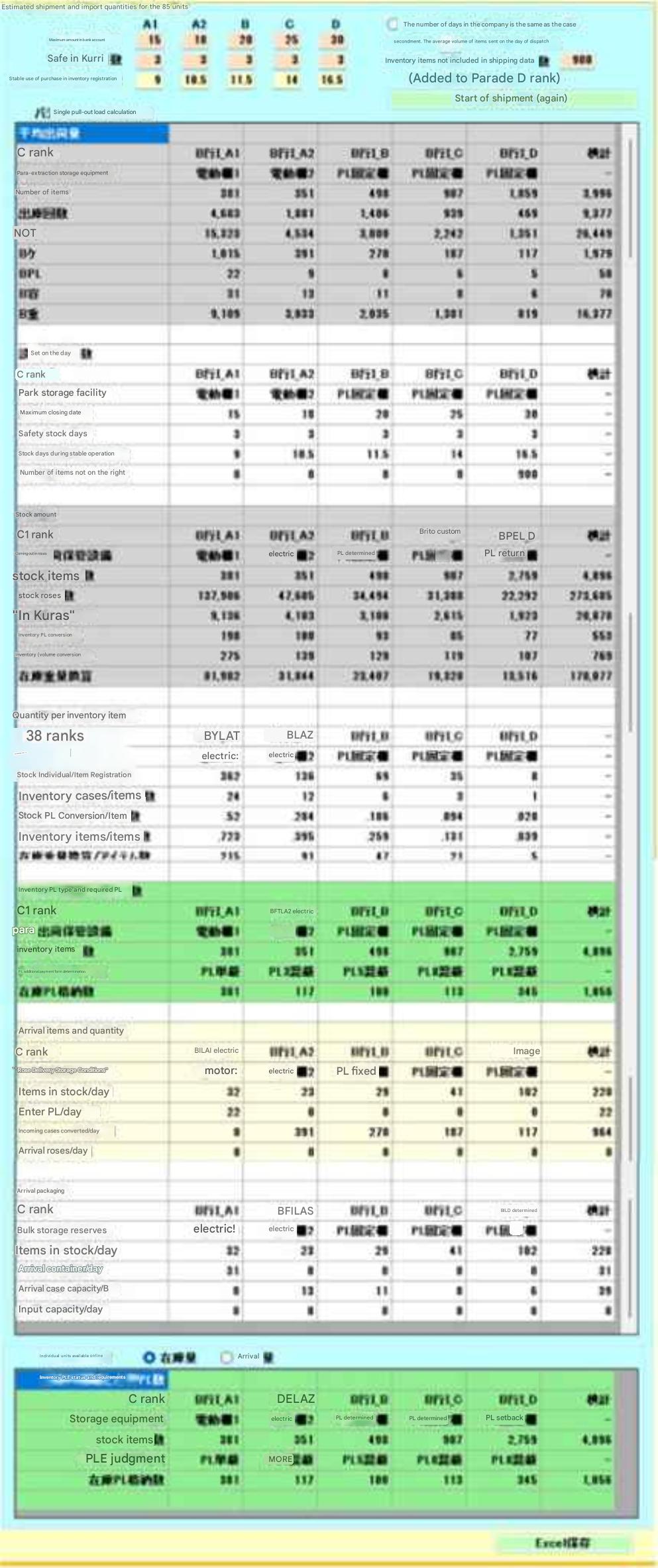 9. Click the Excel button to save inventory and incoming data to Excel. |