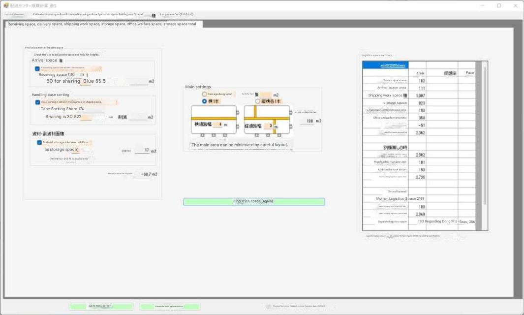 The final adjustments to the logistics space and the total logistics space taking into account the main passageway will be used as the basic figures for setting the building specifications.