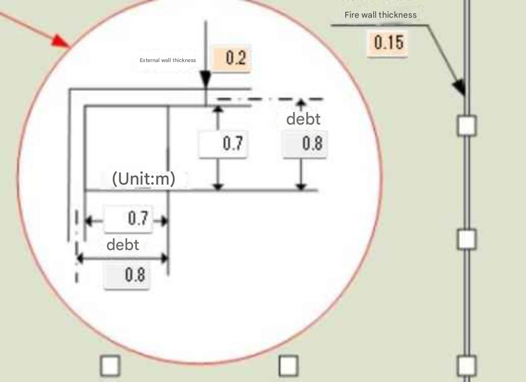 Tera calculations assume that a fire wall is installed for every 1500 m2 of the total building area, and that a 1.5 m wide emergency staircase and ( 2.3 m2 * 2.3 m2 freight elevator area * 1.5 sets) are added for every 1500 m2. |
