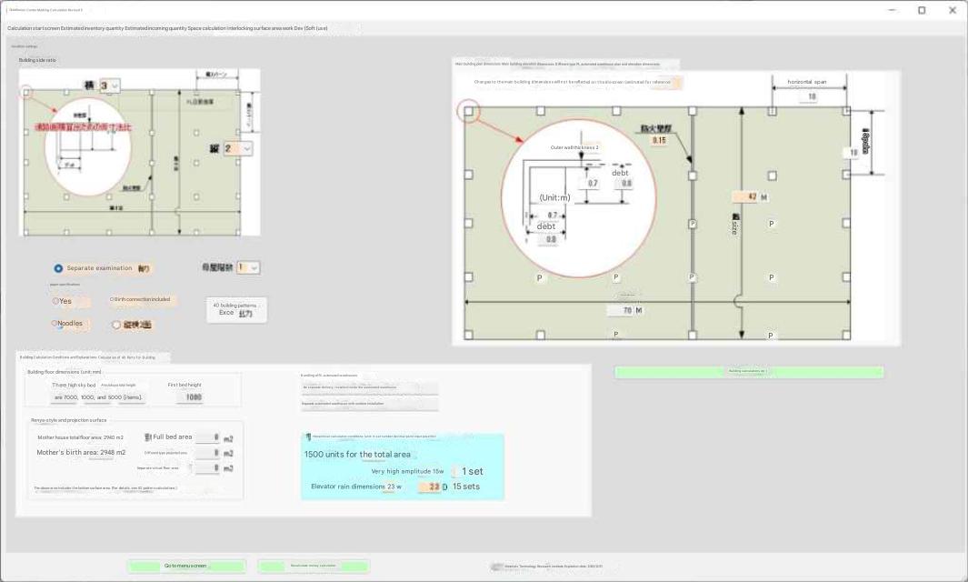 However, there are rare cases where an automated warehouse is constructed as a rack building (a building with no building columns, with walls and a roof attached to the shelves) and a separate building is built. Although it is rare, it affects the site layout (especially the width of the site's aisles), so we decided to incorporate it into Tera Calculation 2. Automated warehouses have many shelves to increase the return on investment, and with more shelves, the second and third floors become open-air structures. A building with no floor (open-air structure) is not good from both a structural and cost perspective. When introducing an automated warehouse, we believe it is worth considering whether to have the automated warehouse as a separate building or to incorporate it into the distribution center (main building).