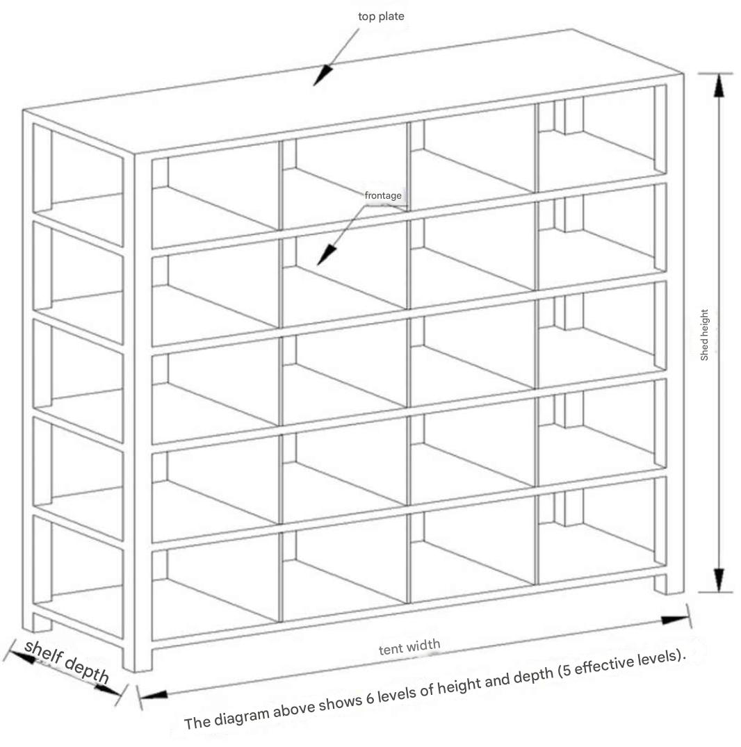 openings per shelf, the fewer the number of shelves, and if it is fewer,
