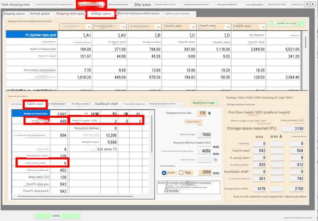 of 2 PL * 3 rows, it is an integer multiple of 6 PL, so if there is 130 PL, it is calculated as 132 PL. For example, if 132 PL needs to be stored, then 132 PL / 6 PL = 2 shelves, and since section A is made up of 10 shelves, an installation