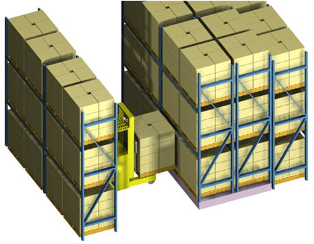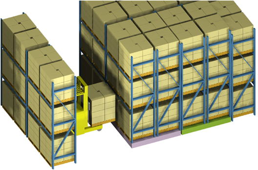 Item 4 PL Electric Shelving Unit 2 PL Electric Shelving Unit 2 has two PL electric shelves placed between PL fixed shelves, making it possible to handle cargo in one aisle where three aisles would normally be required. |