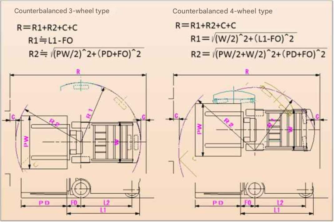 Three-wheeled forklifts have a pivot point at the center of the front axle,