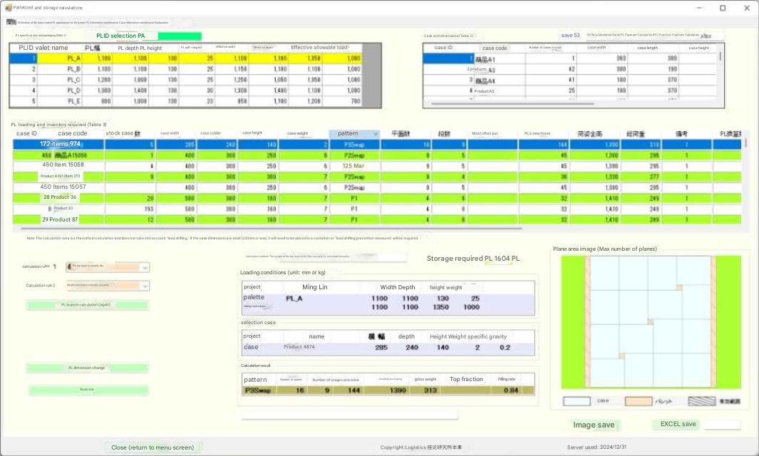 | Excel output After calculation, output to Excel (Tera calculation Data\PL loading calculation\PL loading calculation result 4 mixed 20250109-152656 Top surface plane (normal) Weight calculation included (normal)) |