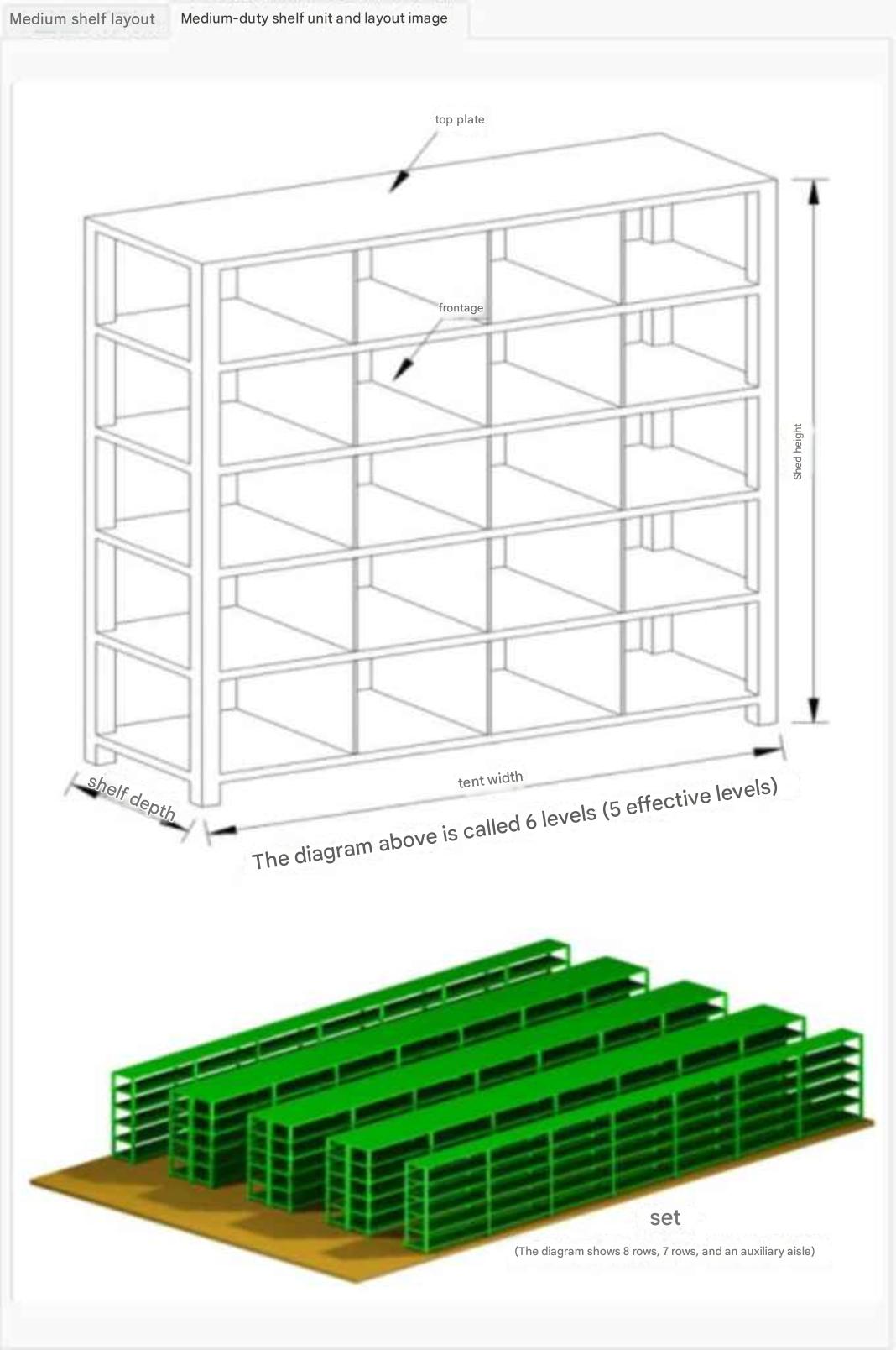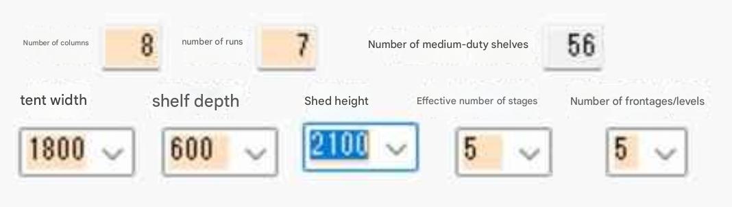 After setting the specifications of the medium-duty shelves and the number of rows and rows, the installation area is calculated.
