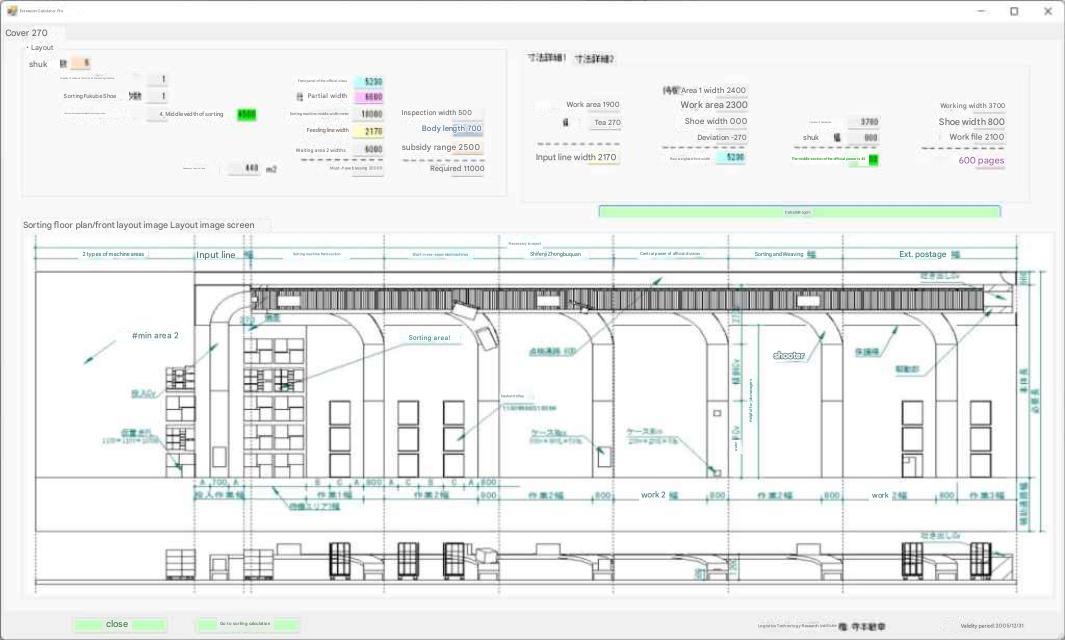 After determining the dimensions of the sorting machine itself, calculate the waiting space for the guest of honor by considering the free space and its interaction with the building and other equipment. |
