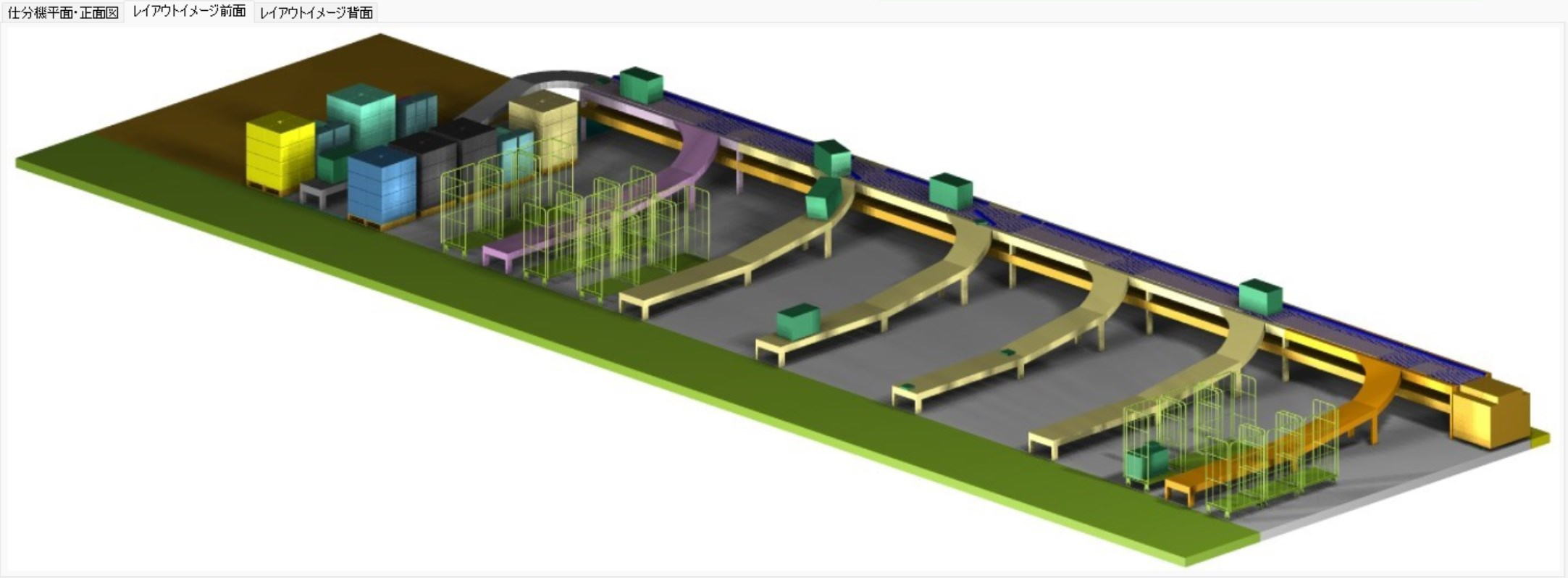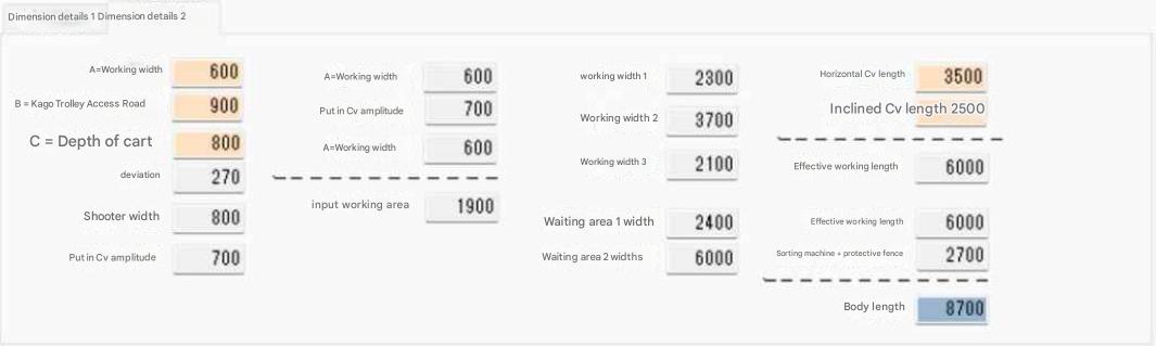 Sorting machine width = total + (middle section * number of middle section chutes) + rear.